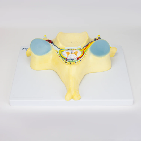 一個放大七倍的模型,詳細展示了第五頸椎的結構;脊髓的橫截面,包括灰質和白質、神經分支、脊神經節及血管。重要的解剖結構以編號和不同顏色標示,便於理解。採用耐用的合成材料製成。配合具有擴增實境功能的互動3D解剖模型,是促進學習和支持的絕佳工具。此平台允許學生進行解剖模型的比較分析,對比各個器官的結構。此計劃同時提供持續教育的平台,為所有學生提供機會,增進他們對解剖學、生理學及病理生理學的知識。