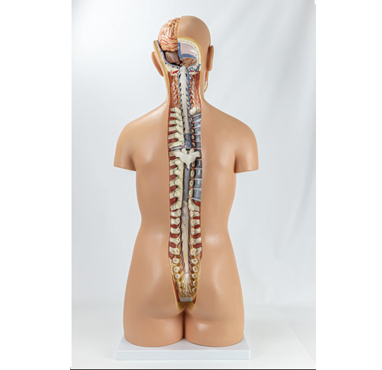 實物大小由17個部分組成,精確到每一個細節,供人類解剖學課程使用。頭部被切割,暴露出一半的大腦。頸部通過腹面進行解剖,以顯示肌肉、腺體、血管和神經結構。胸部和腹部開放,便於對內部器官及相關結構進行不受限制的分析。背部被解剖,顯示肌肉層、脊柱、脊髓和神經分支。一個胸椎可拆卸,以便詳細檢查其結構及與脊髓的關聯。