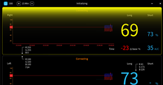 - 以 32Hz 時間解析度連續測量氧合血紅蛋白、脫氧血紅蛋白及總血紅蛋白濃度的變化(ΔHbO2、ΔHbR 及 ΔHT)。